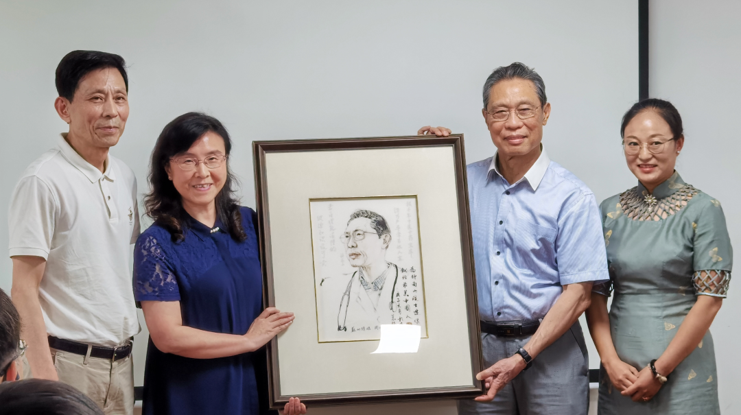 继5月份周丽琴将苏绣肖像赠予李兰娟院士后,7月11日上午,苏州市工艺美术学会常务副会长、苏州工艺美术研究院执行院长马建庭陪同苏州市科协党组书记、主席程波,苏州民间工艺家周丽琴一行,特赴广州羊城,参加中国科协为钟南山院士团队颁发第二届全国创新争先团队奖以及广东省科协慰问钟南山院士团队的活动。在活动过程中,广东省科协特地为苏州科协安排了赠礼环节。